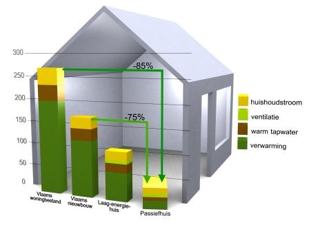 * algemeen: warmtevraag van < 60kWh/m2 jaar of een K-peil lager dan 30 voor renovaties en een K-peil lager dan 25 voor nieuwbouw. Voor meer details en selectiecriteria zie www.ecobouwers.be