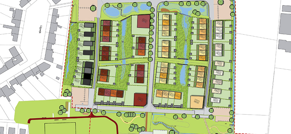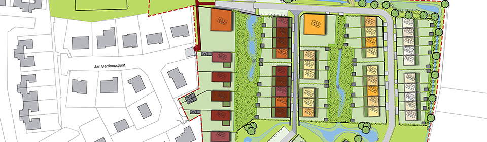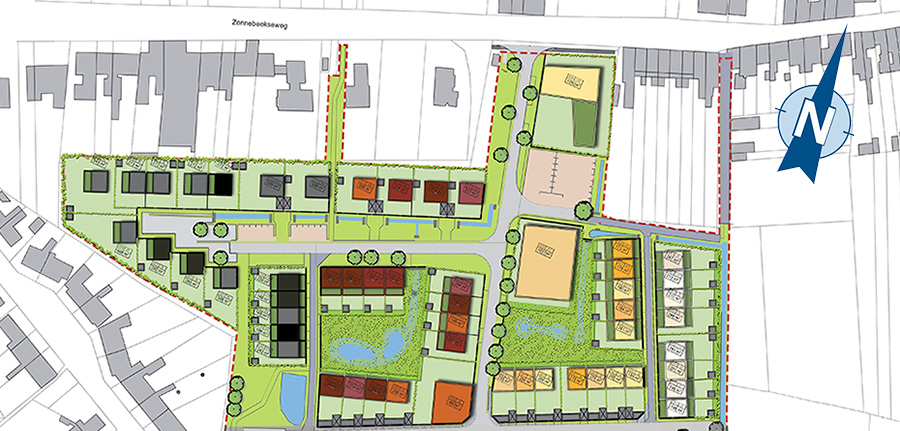 Hieronder ziet u het volledige percelenplan van De Vloei, opgedeeld in vier zones. Selecteer één van deze vier zones. Vervolgens kunt u individuele loten selecteren.